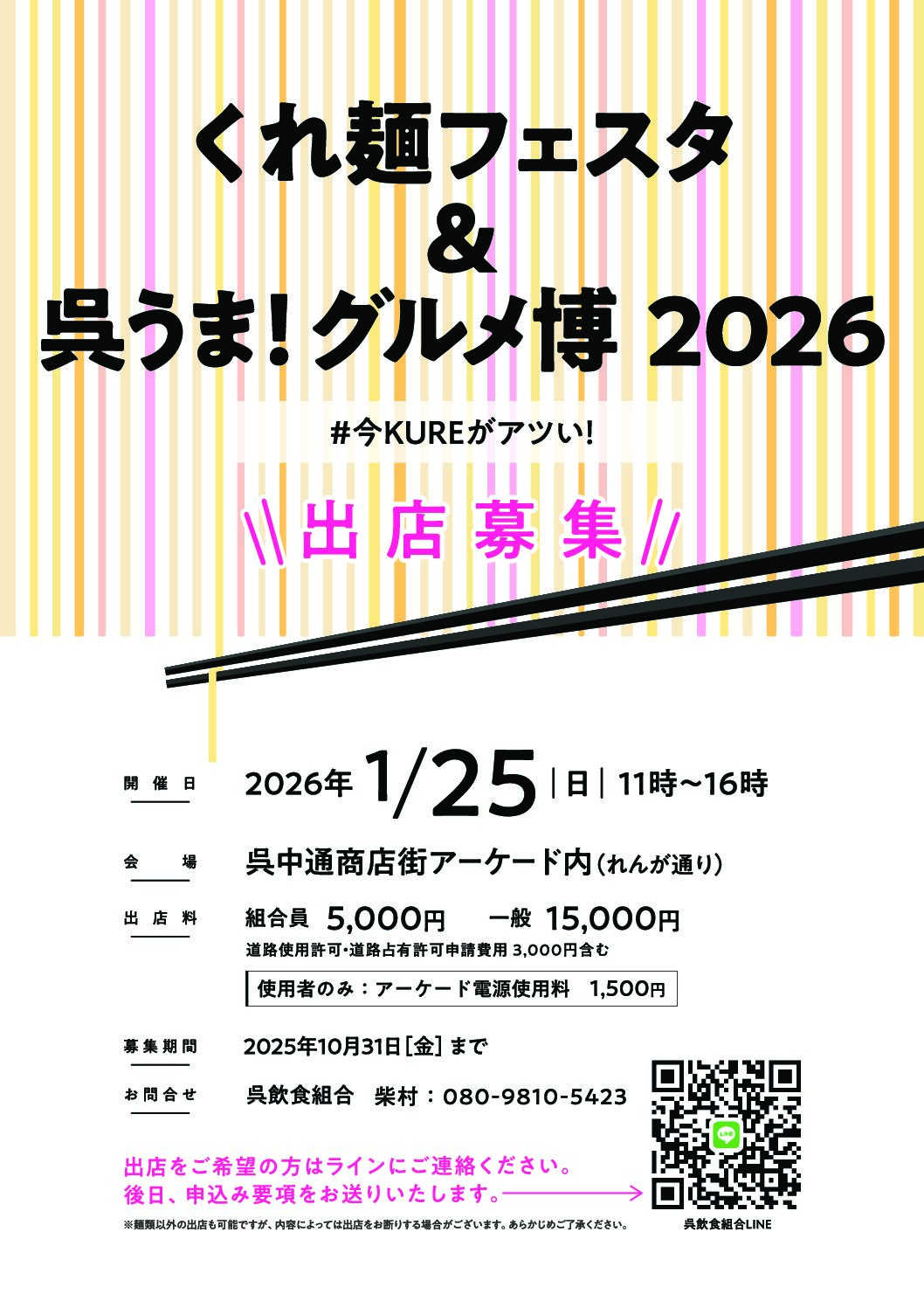 「くれ麺フェスタ&呉うま!グルメ博2026」出店募集のお知らせ